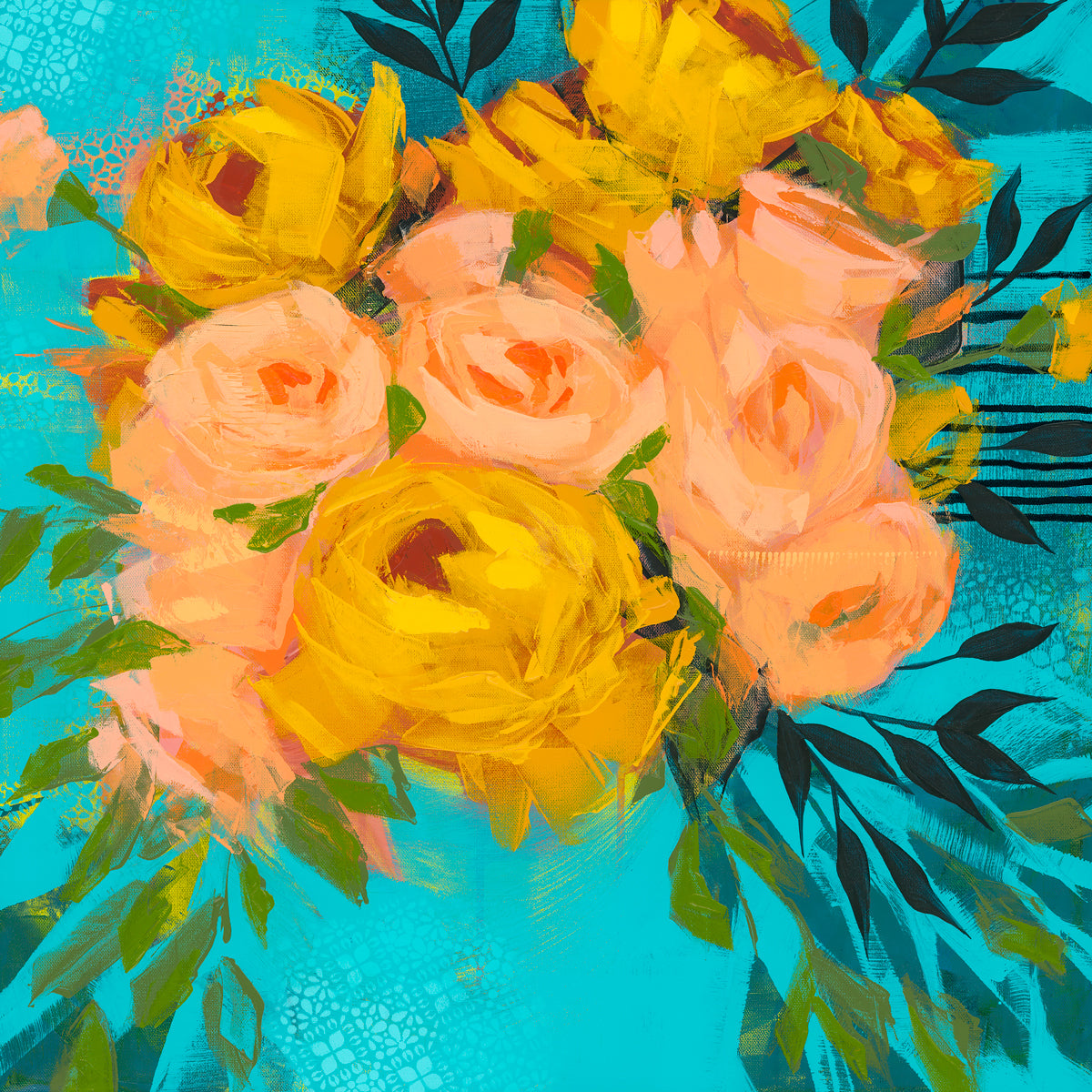 This original abstract floral painting is on a 1.5" deep canvas. The back is wired and ready to hang, and the image continues onto the edges so it can be hung without a frame.